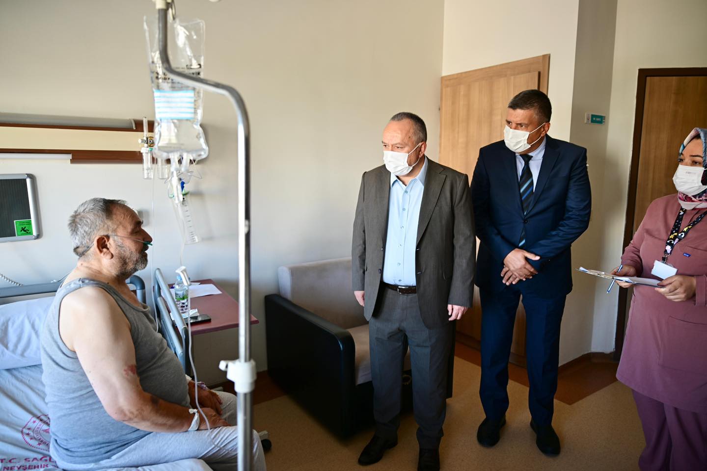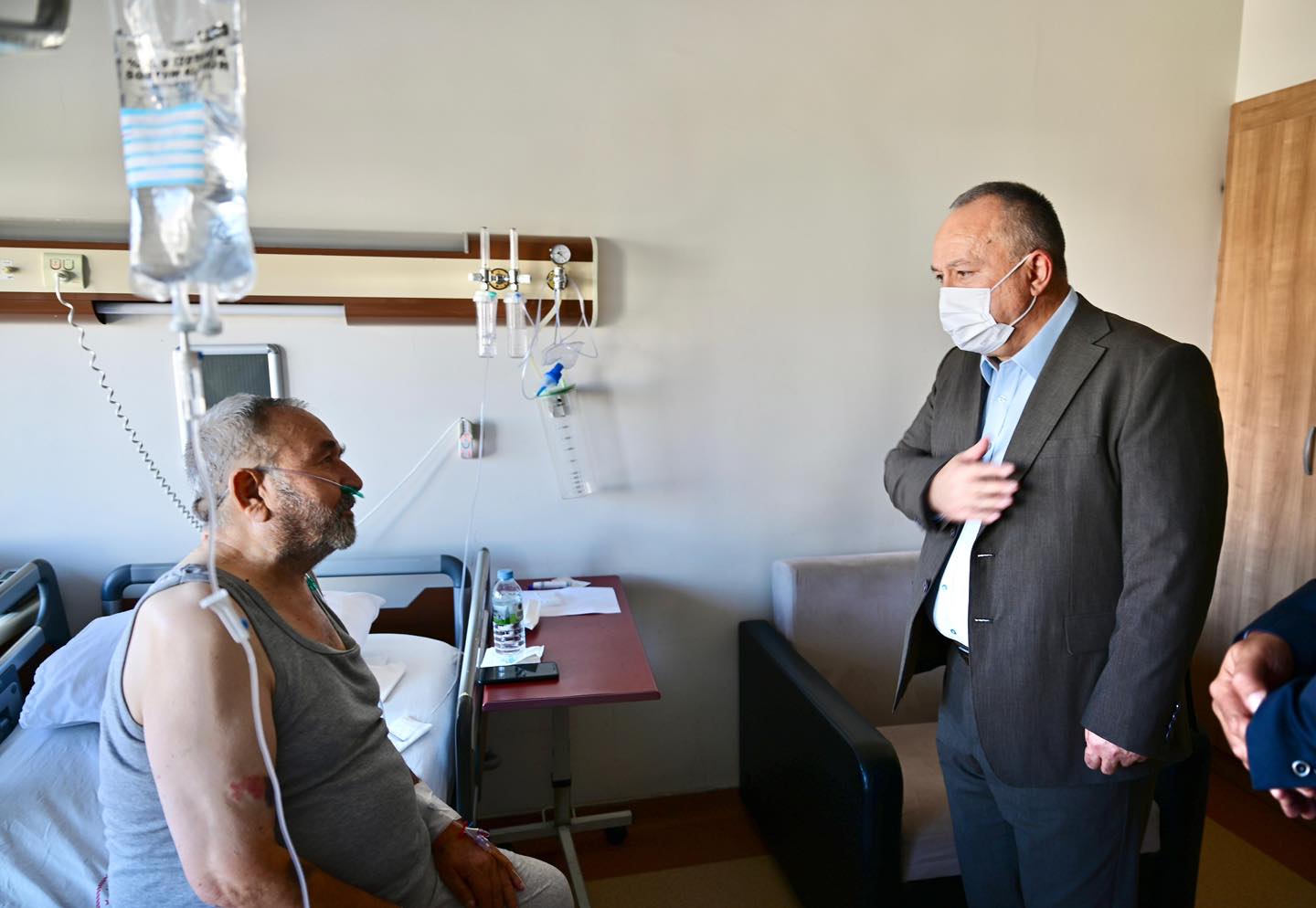 Bir süredir sağlık sorunları nedeniyle hastanede tedavi altında bulunan Rıza Yılmaz’ı odasında ziyaret eden Vali Fidan, geçmiş olsun dileklerini ileterek sağlık durumu hakkında doktorlardan ve hastane yönetiminden bilgi aldı.