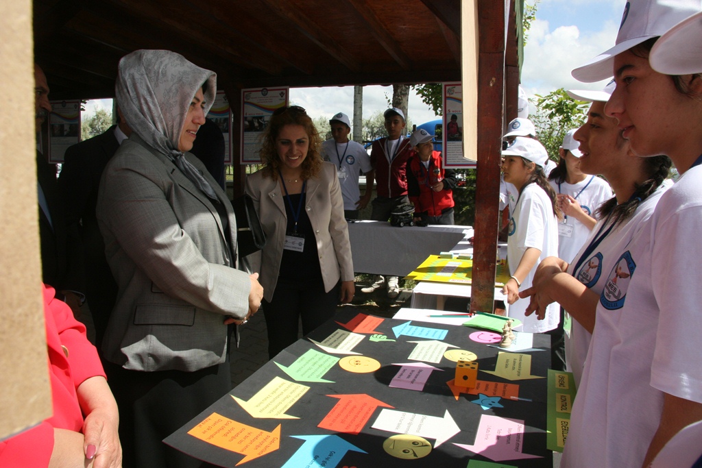 Ortaokul öğrencilerinin hazırladığı toplam 24 projenin stantlarını ziyaret ederek öğrencilerden bilgi alan Ataklı hanımefendi ve beraberindekiler öğrencileri gayretlerinden dolayı tebrik ederek başarılar dilediler.