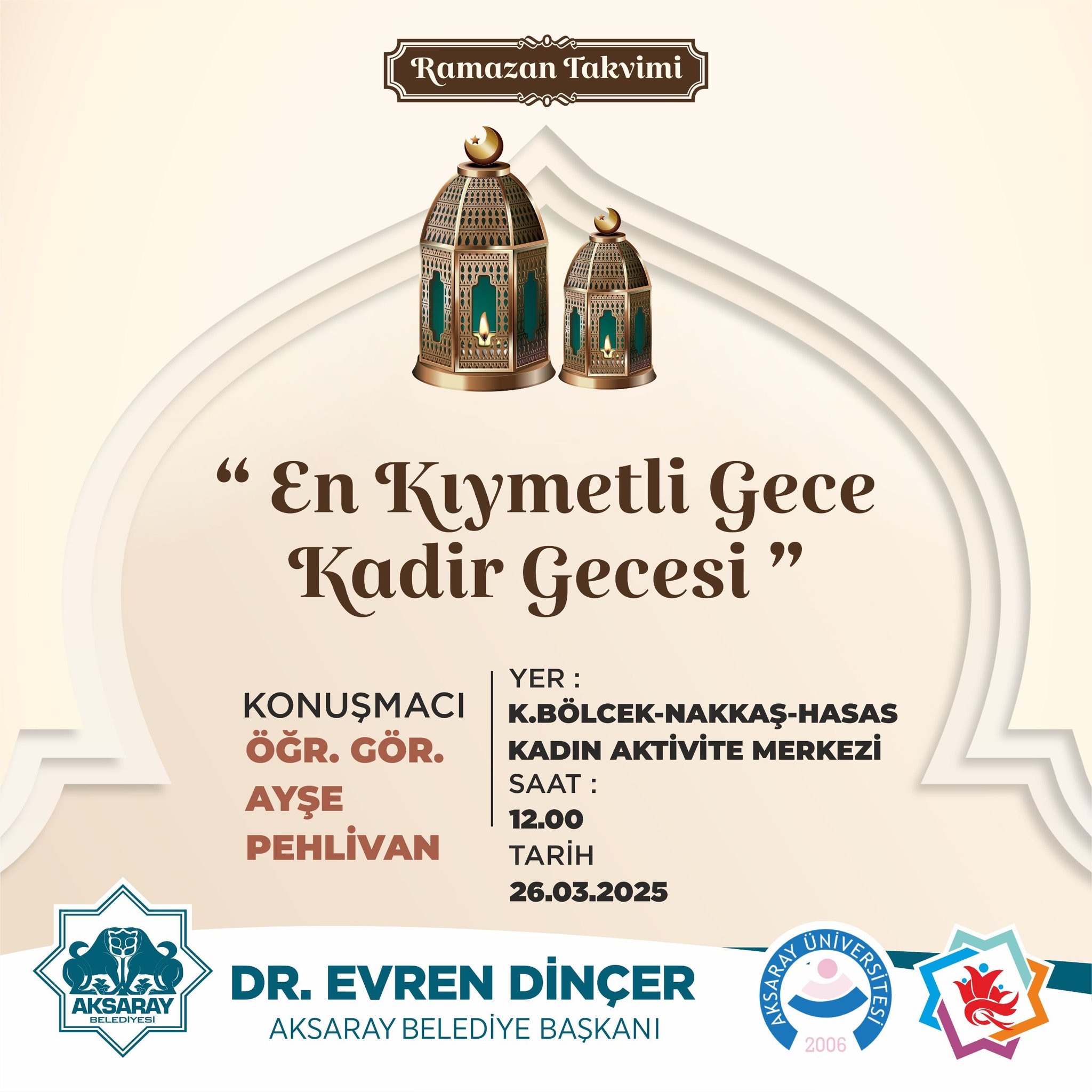 “En Kıymetli Gece Kadir Gecesi” (26 Mart 2025, Küçük Bölcek – Nakkaş – Hasas Kadın Aktivite Merkezi)