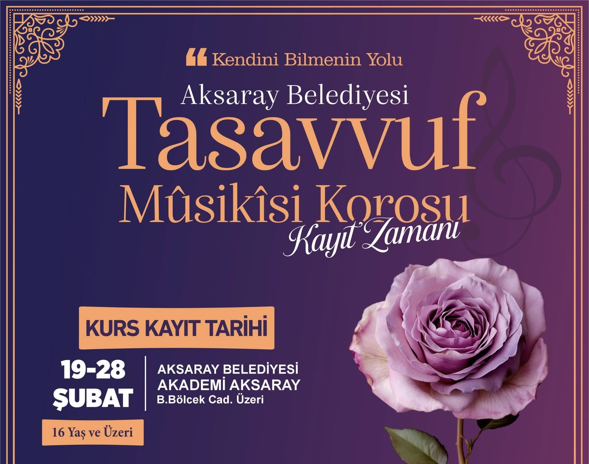Aksaray Belediyesi, müzikseverleri manevi bir yolculuğa çıkaracak Tasavvuf Musikisi Korosu’na katılmaya davet ediyor. Akademi Aksaray’da düzenlenecek kurs için kayıt süreci 19-28 Şubat tarihleri arasında gerçekleştirilecek.