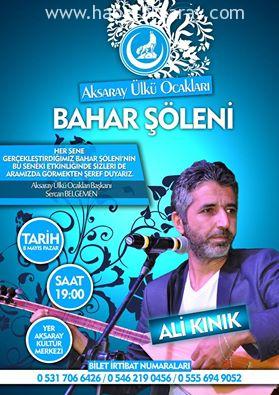 Aksaray Ülkü Ocakları’nın düzenlemiş olduğu ‘Bahar Şöleni’ adlı konserde Ali Kınık sahne alacak..