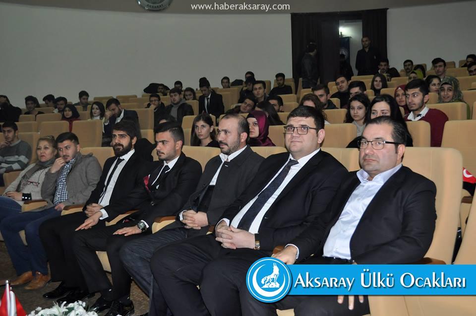 Konuşmasını Aksaray Ülkü Ocakları Başkanı Sercan Belgemen’e Üniversite Birimi adına vermiş olduğu hediyesiyle sonlandırdı.