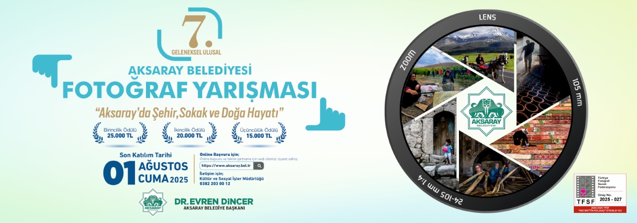 Aksaray Belediyesi tarafından geleneksel hale getirilen ve bu yıl 7’ncisi düzenlenecek olan Ulusal Fotoğraf Yarışması için başvuru süreci başladı. Türkiye genelinden profesyonel ve amatör fotoğraf sanatçılarının büyük ilgi gösterdiği yarışma, Aksaray’ın doğal güzelliklerini, tarihi ve kültürel dokusunu objektiflere yansıtmayı hedefliyor.