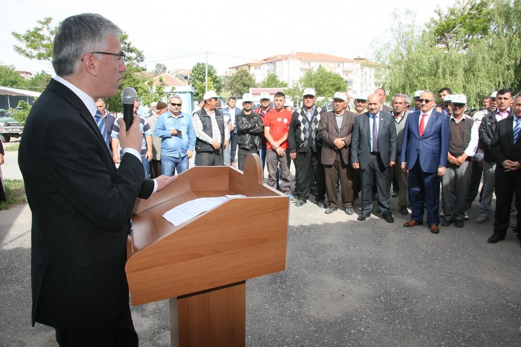 Gıda Tarım ve Hayvancılık İl Müdürlüğü bahçesinde düzenlenen törene İl Genel Meclis Başkanı Muammer Tüzün, Gıda Tarım ve Hayvancılık İl Müdürü Bestami Zabun, Ziraat Odası Başkanı Emin Koçak, Süt Üreticileri Birliği Başkanı Esat Zengin, Veteriner Hekimler Odası Başkanı Önder Yıldız ve hak sahibi çiftçiler katıldı.