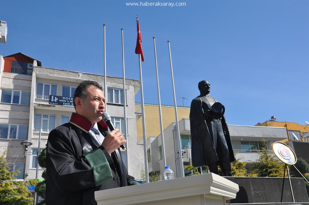 Aksaray Barosu Başkanı Levent Bozkurt, Cumhuriyet Meydanı’ndaki Atatürk Anıtı’na çelenk sundu. Ardından saygı duruşunda bulunuldu, İstiklal Marşı okundu.