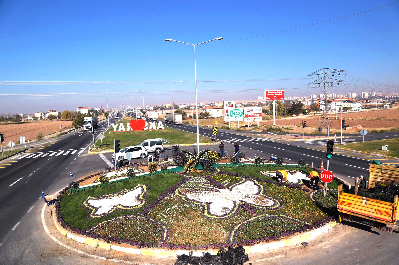 Son olarak Ankara Karayolu TOKİ kavşağında çevre düzenlemesi ve peyzaj çalışması başlatan ekipler, kavşak noktasını mevsimlik çiçekler süsleyerek güzel bir görünüm kazandırmaya başladı..