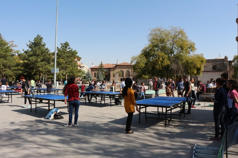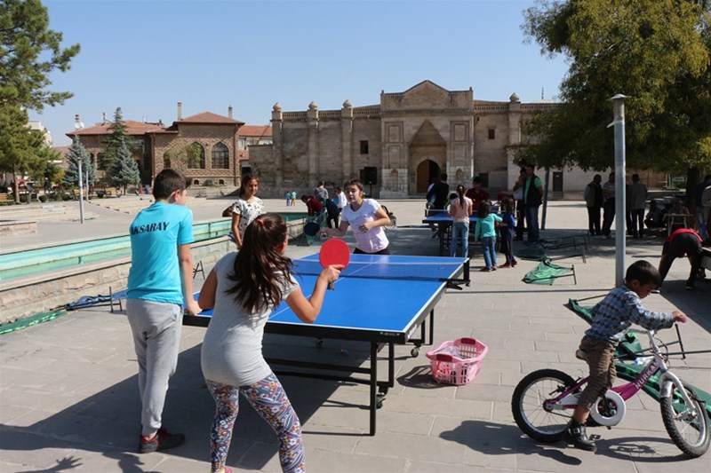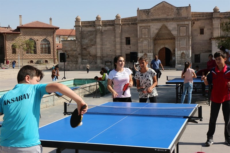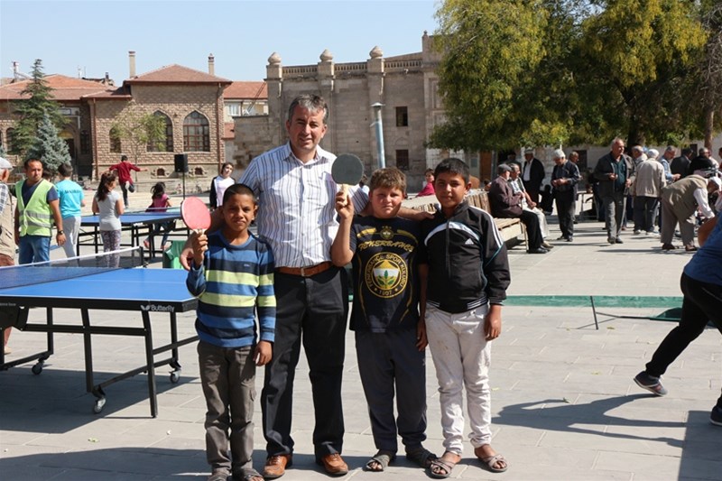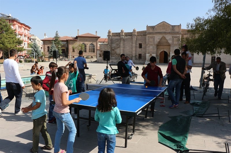 Tarihi mekânlarımızdan olan Ulu Cami önünde düzenlenen etkinlikte küçükten büyüğe herkes masa tenisi oynayarak keyifli zaman geçirdi.