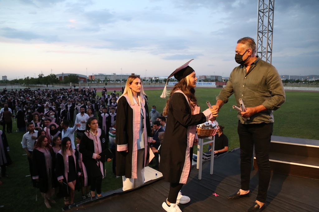 Salgın koşulları münasebetiyle bu yıl mezuniyet törenleri 5-9 Temmuz tarihleri arasında beş bölüm halinde yapıldı.