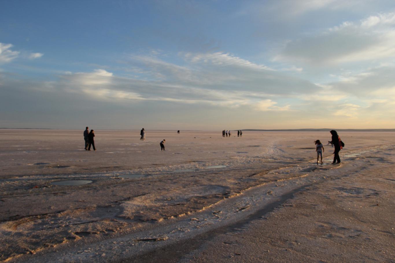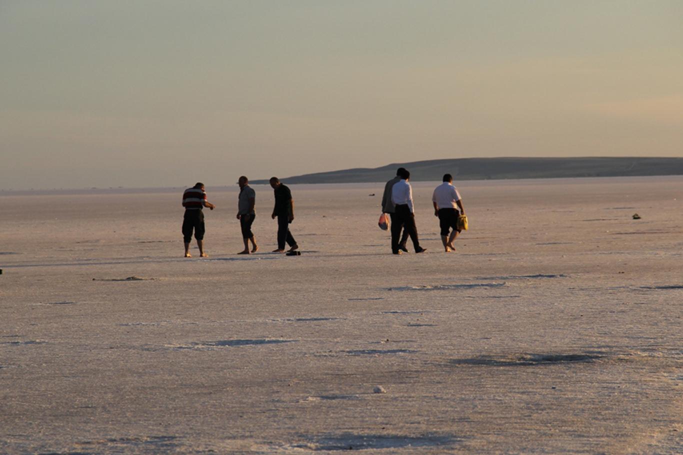 İç Anadolu Bölgesi’nde Aksaray, Ankara ve Konya sınırları içerisinde bulunan Tuz Gölü’ne gelen ziyaretçiler, suyun çekilmesiyle beraber ayak sağlığı için tuz kütlelerinin üzerinde yürüyorlar.