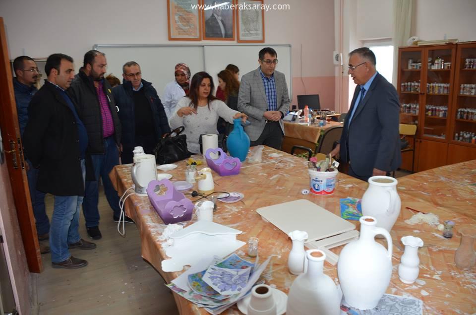 Aksaray Ticaret Borsası Başkanı Hamit Özkök beraberinde Yönetim Kurulu Üyeleri Hasan Kurt, Ziraat Mühendisi Mustafa Aydın, Hakan Acar, Volkan Acar ve İç Mimar Aydan Öncül Aksaray Özel Eğitim Meslek Lisesindeki öğrencileri ziyaret ettiler..