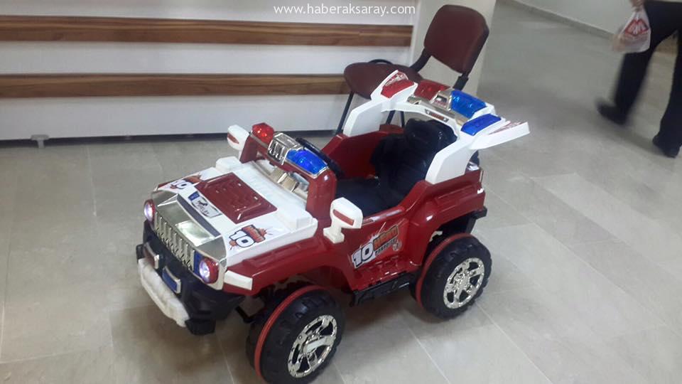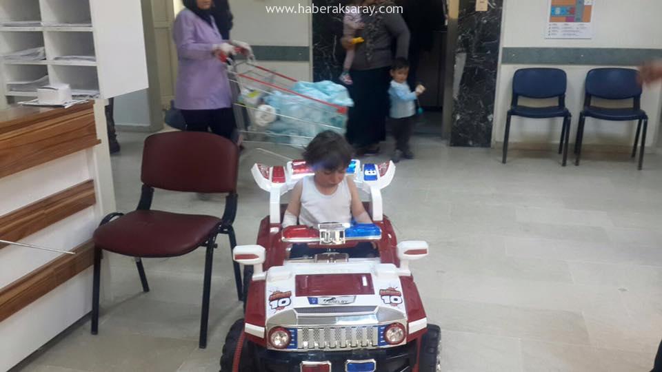Aksaray Devlet Hastanesi Şammas Vehbi Ekecik Çocuk Hastalıkları Kliniğinde çocukların ameliyata korkmadan gitmesini sağlamak için, hastaneye iki adet akülü oyuncak araba alındı..