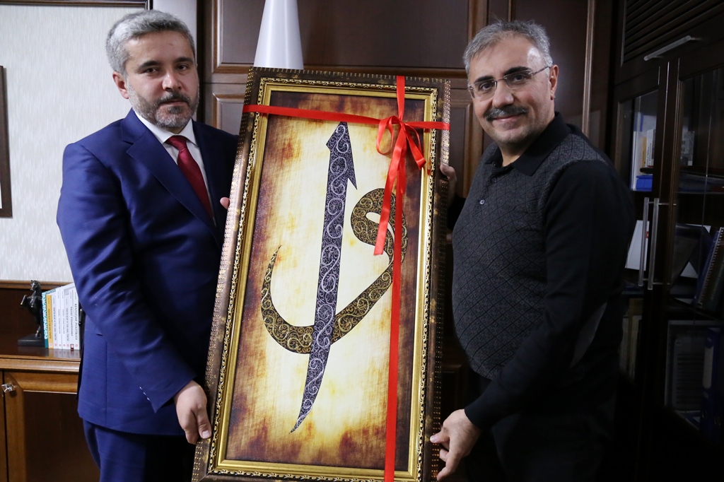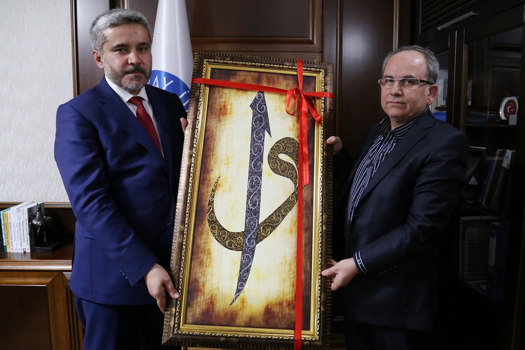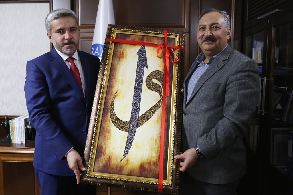 Ziyaretin son kısmında Rektör Şahin, konuklarına, üzerinde Arapça “Elif” ve “Vav” harflerinin yer aldığı tablolar hediye etti. Ziyarete Aksaray Cumhuriyet Başsavcısı Ramazan Akın, Ağır Ceza Reisi Adalet Komisyonu Başkanı Seyfullah Sarıgül, İdare Mahkemesi Başkanı Osman Erkan da iştirak etti..