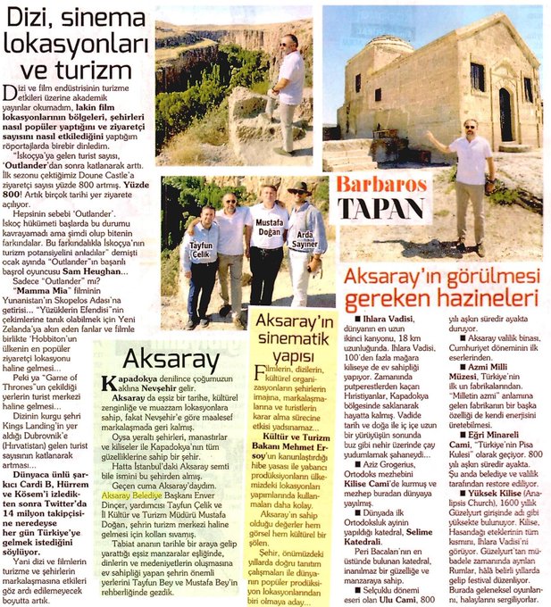 Gazeteci Yazar Barbaros Tapan Aksaray ziyareti sonrası düşüncelerine ‘Dizi, sinema lokasyonları ve turizm’ başlıklı yazısında yer verdi.
