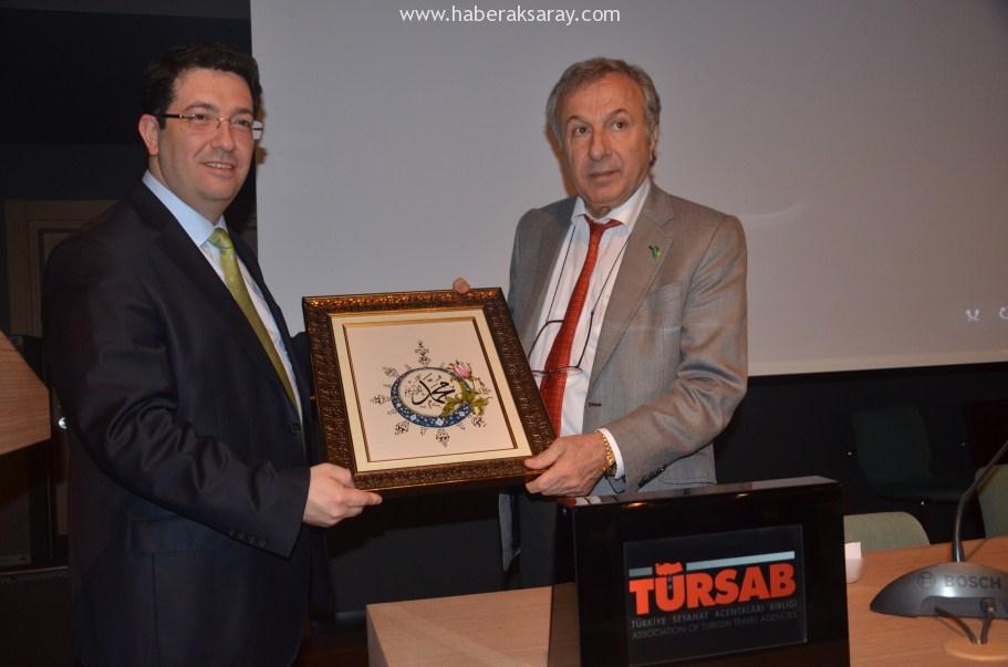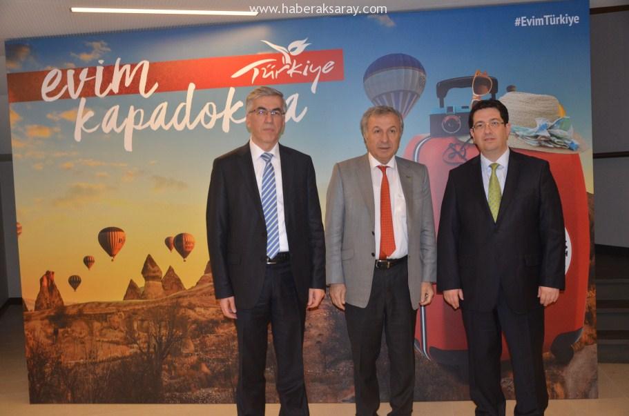 TÜRSAB Başkanı Başaran Ulusoy ise “Dünyada ve Türkiye’de turizm ile ilgili bazı sorunların yaşandığı bir dönemde Kapadokya’nın en mühim şehirlerinden biri olan Aksaray’ın bu derece şevk ve heyecanla turizm konusuna el vermesi ve TÜRSAB’la birlikte Kapadokya ve ülke turizmine katkı sağlamaya yönelik çalışmalar yapması ve bizimle birlikte İstanbul’da böyle bir toplantıyı tertip etmesi bizleri ziyadesiyle memnun etmiştir.” Dedi.