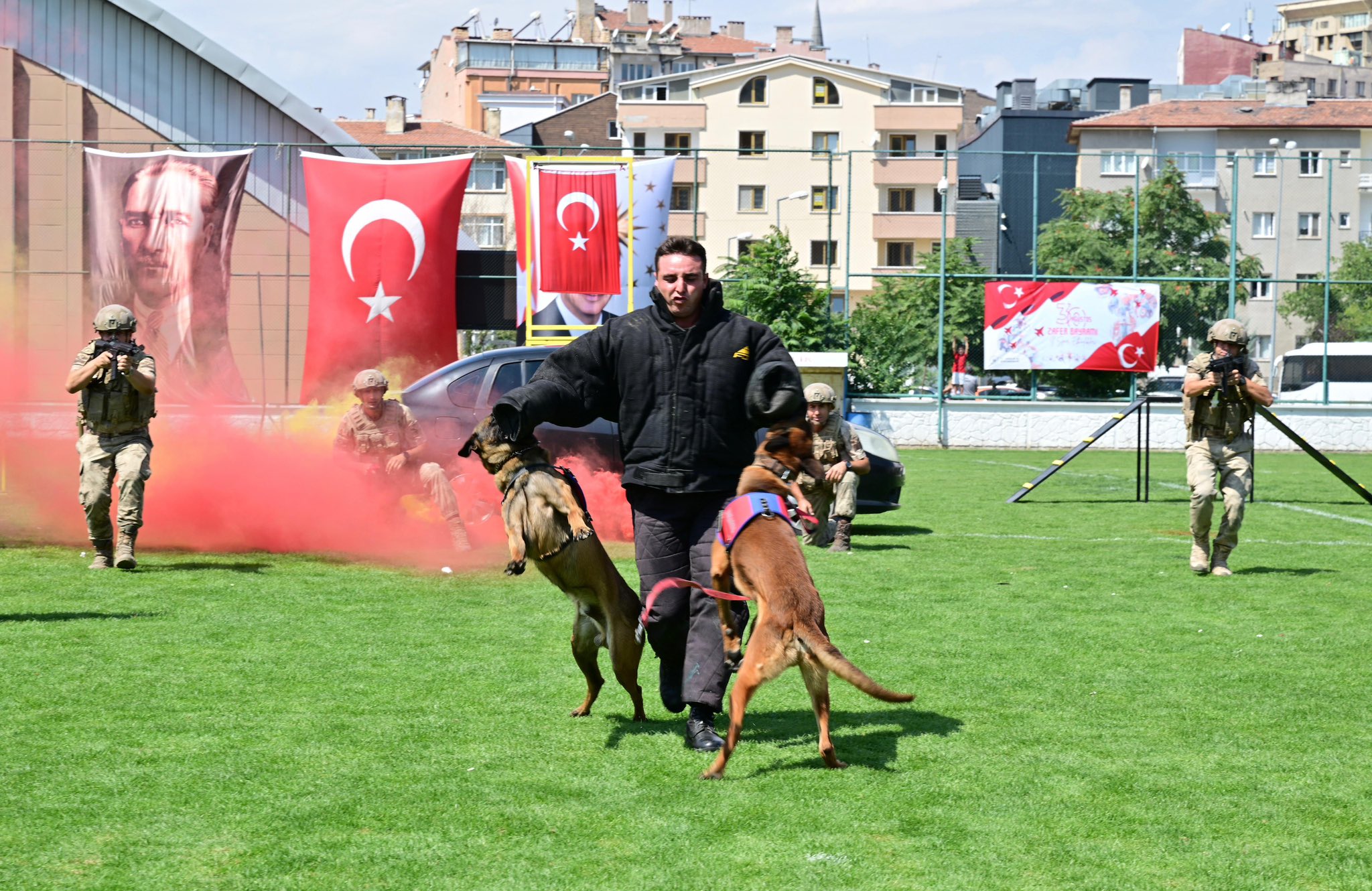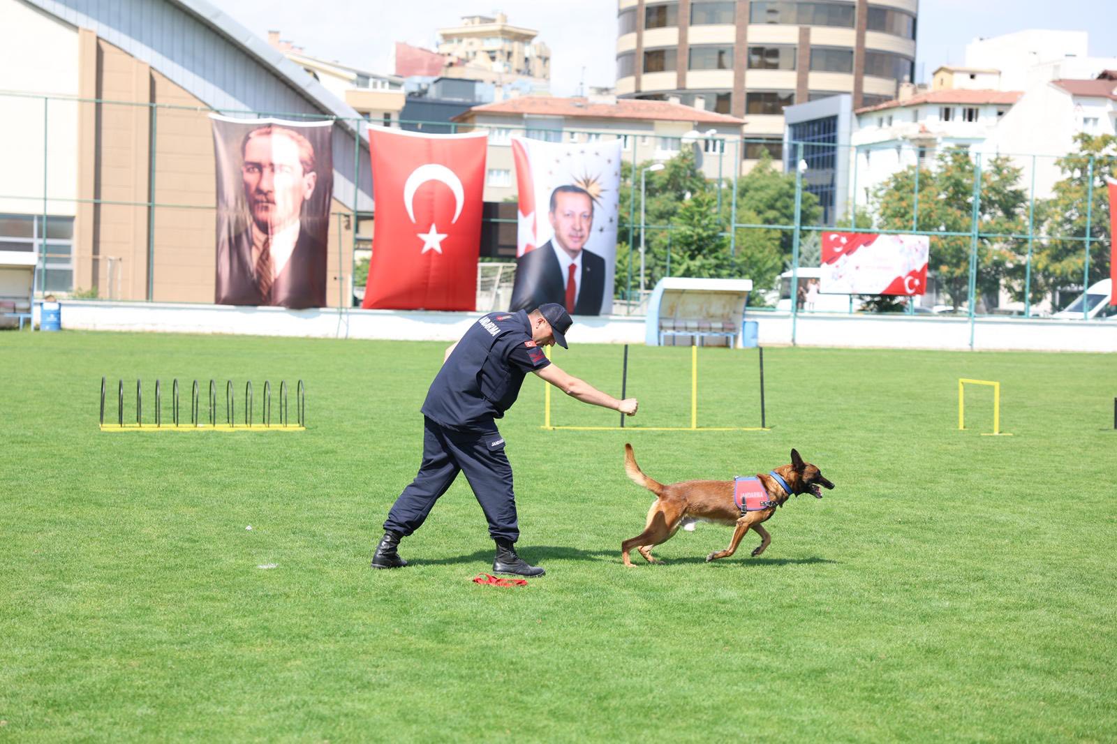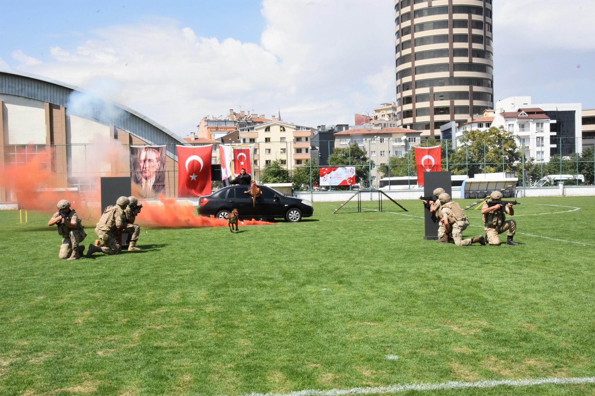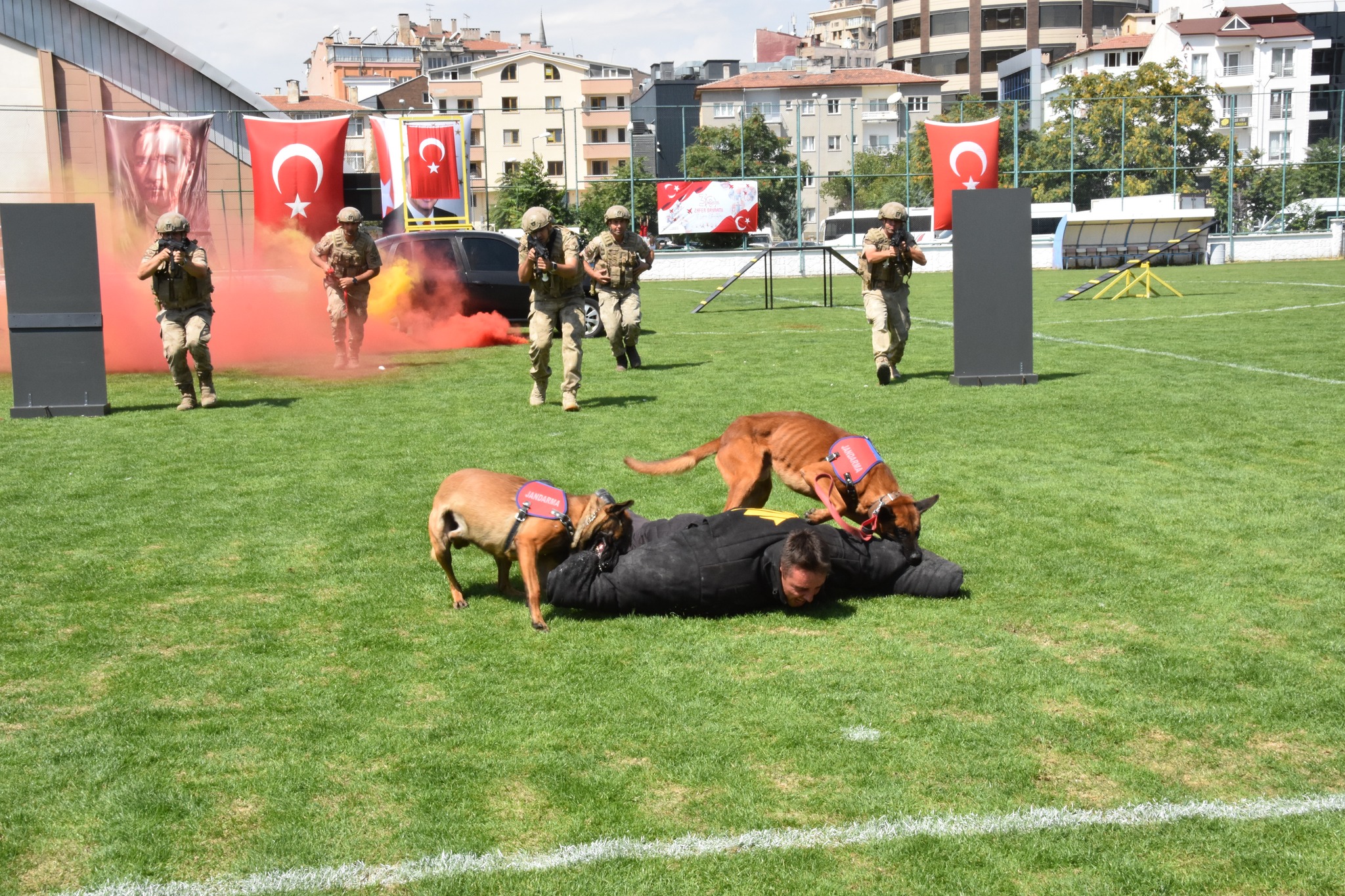 JAKEM Komutanlığı bünyesinde çeşitli branşlarda eğitilen köpekler, temel itaat hareketleri ve engel parkurundaki performanslarıyla izleyenleri büyüledi. Özellikle çocukların yoğun ilgi gösterdiği gösterilerde, köpeklerin sergilediği çeviklik ve disiplin törene damgasını vurdu.