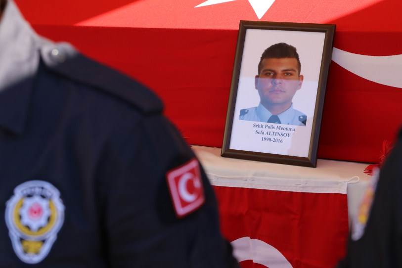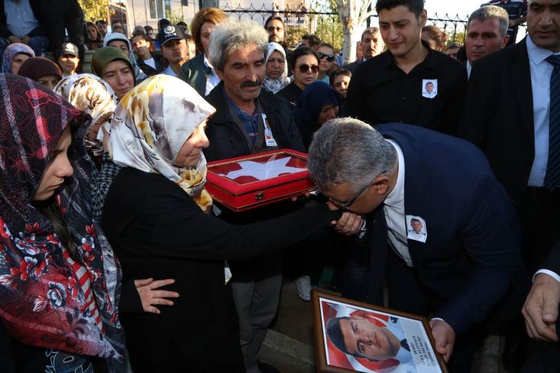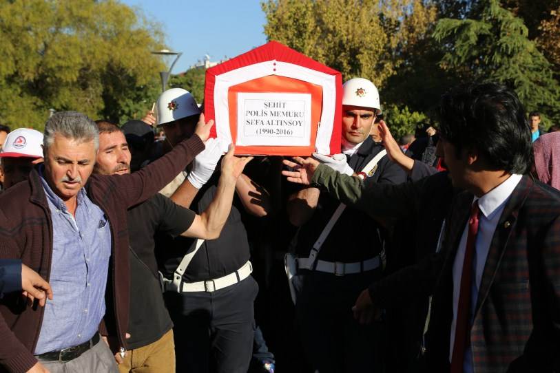 Şırnak’ın Cizre ilçesinde PKK’lı teröristlerce bomba yüklü kamyonla gerçekleştirilen saldırıda yaralanan ve hastanede şehit olan polis memuru Sefa Altınsoy’un (26) naaşı, Aksaray’da defnedildi.