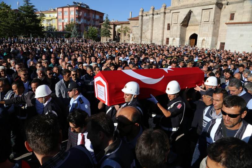 Cizre’de PKK’lı teröristlerce bomba yüklü kamyonla gerçekleştirilen saldırıda yaralanan ve hastanede şehit olan polis memuru Sefa Altınsoy’un cenazesi, Aksaray’da toprağa verildi.