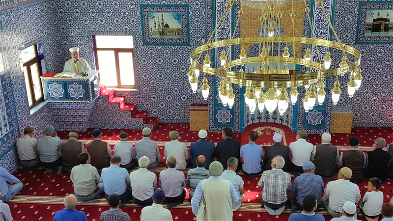 Sultanhanı Kasabası’nda Şerife Hatun Camii’nin ibadete açılış programı Müezzin Hilati Özdemir’in Kur’an-ı Kerim Tilavetiyle başladı.