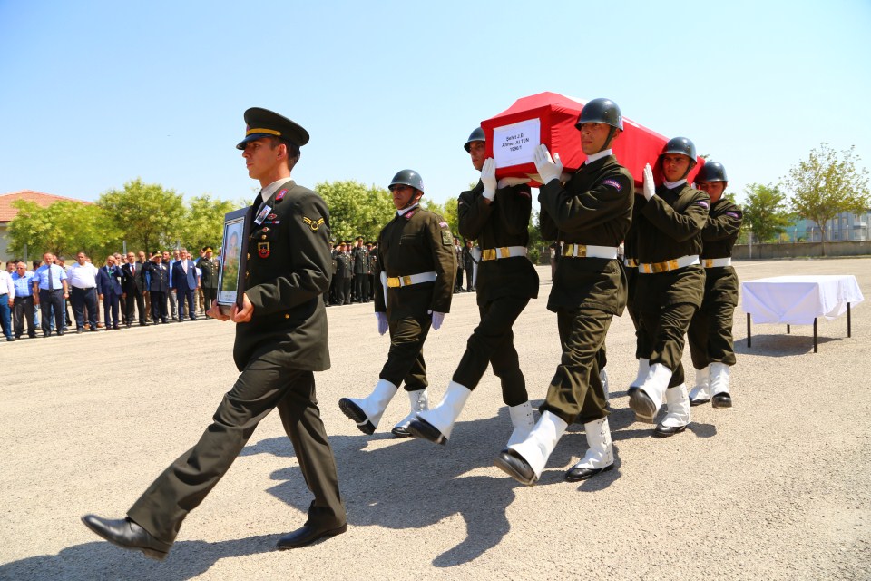 Saygı duruşu ile başlayan törende, şehit Altun’un öz geçmişi okundu. Şehidin cenazesi, İl Müftüsü Cemalettin Bal tarafından yapılan duanın ardından askerlerin omuzlarında cenaze aracına taşındı.