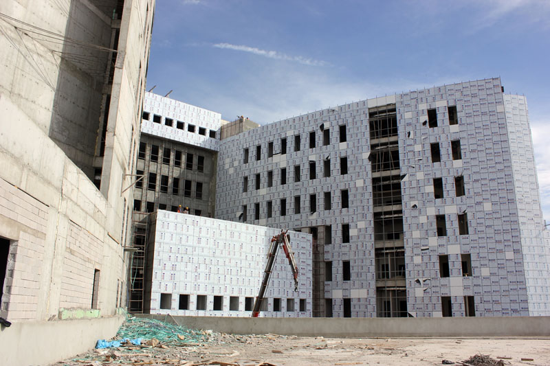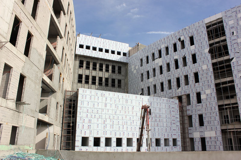 Son olarak inşaat alanını gezen Aksaray Devlet Hastanesi yetkilileri ve teknik ekip, yapılan havalandırma çalışmalarını ve dış yüzeye kaplanmasına başlanan cam duvarları yerinde inceledi.