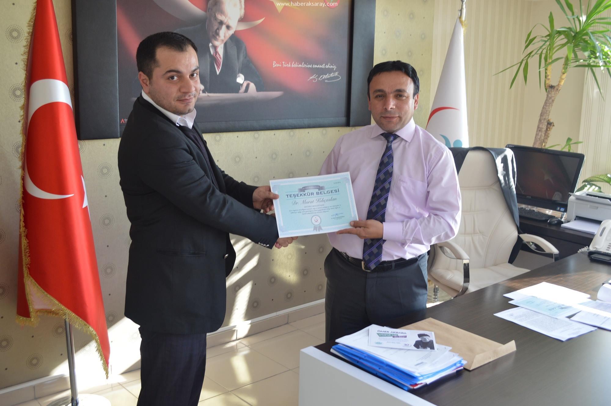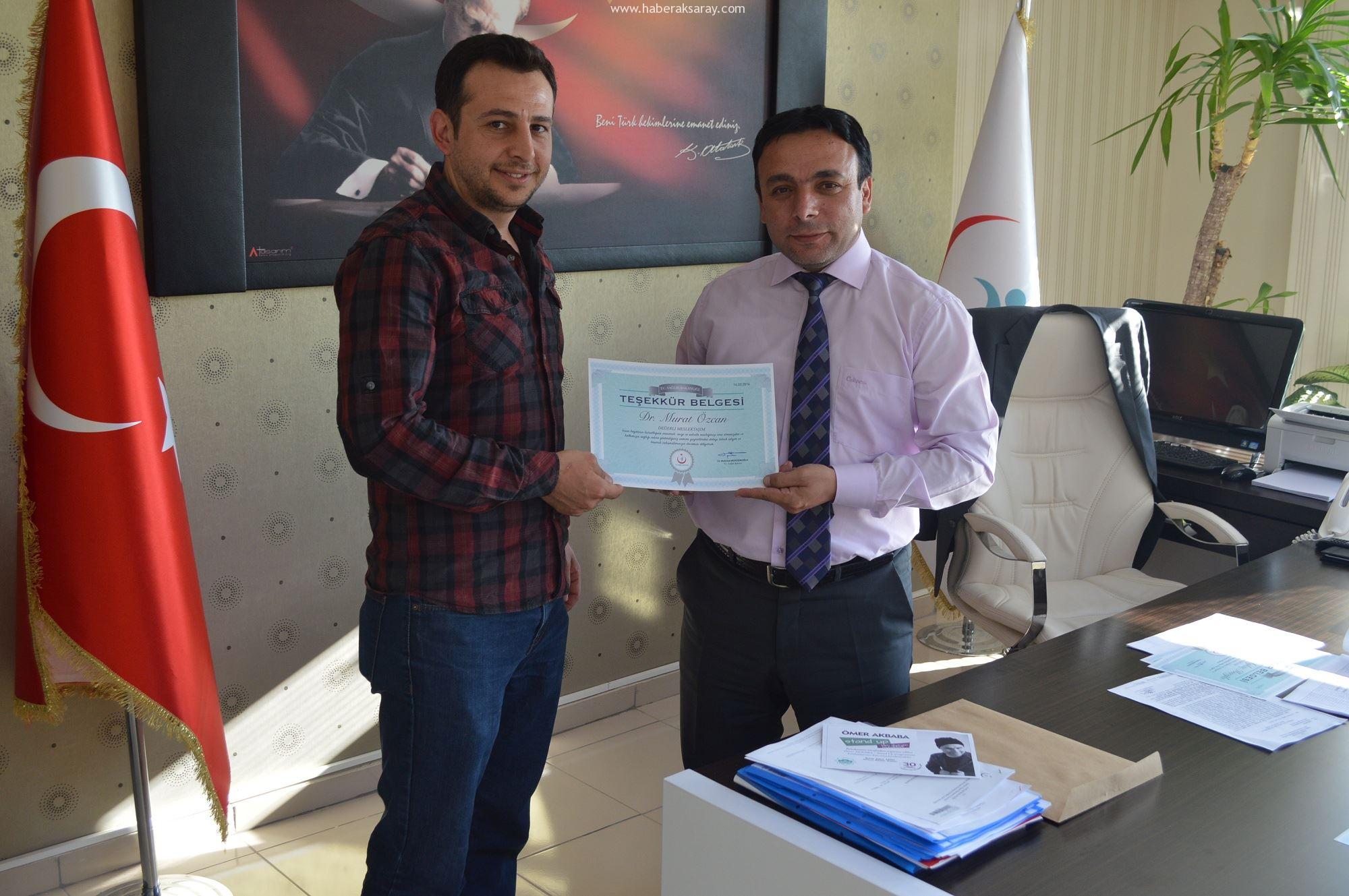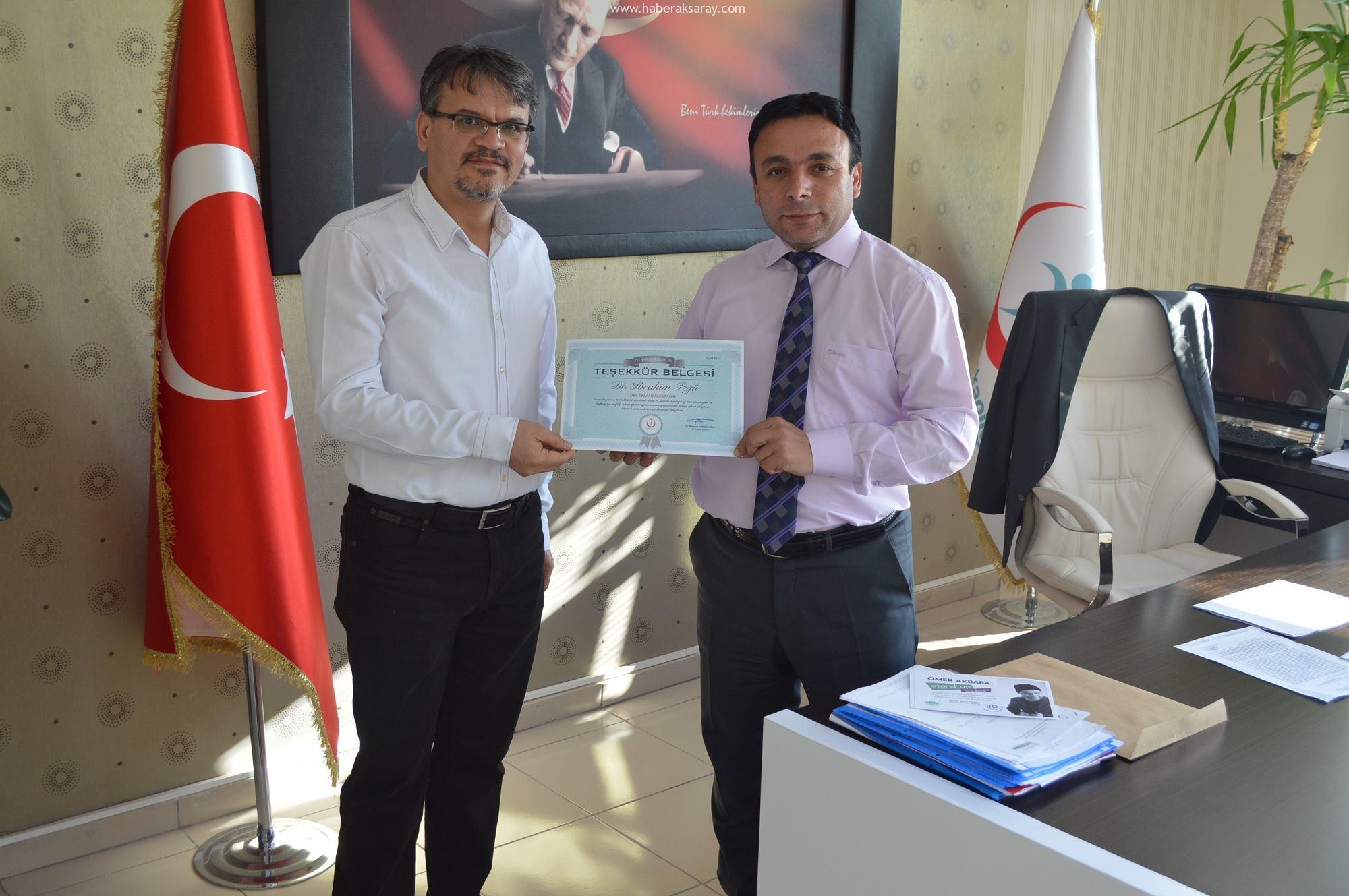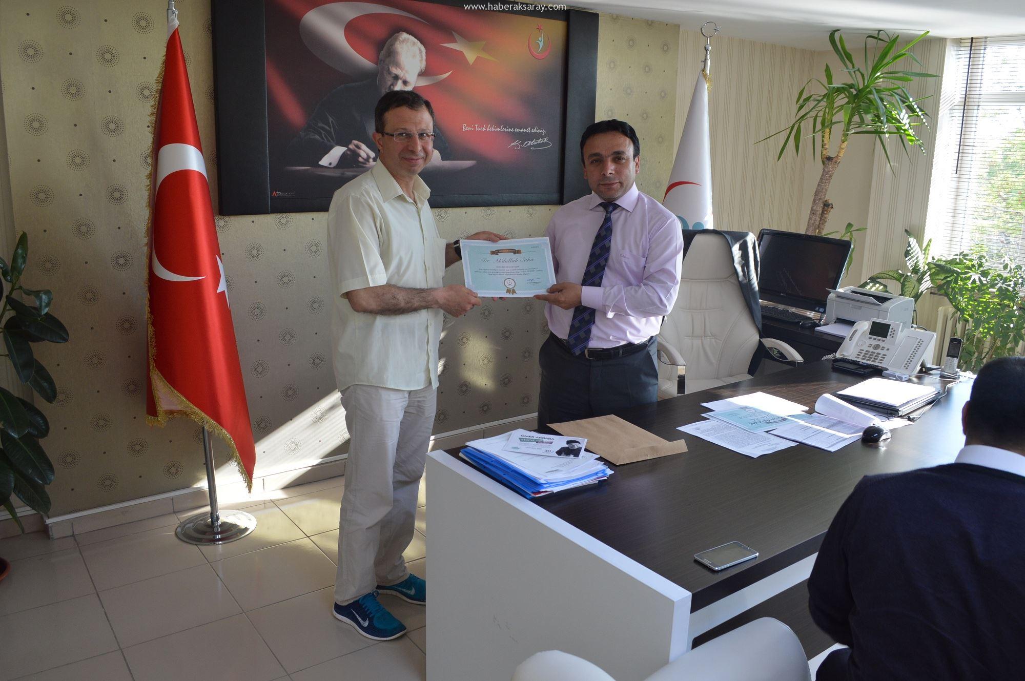 Dr. Saka’ya yılın doktoru belgesi ile diğer 5 doktora teşekkür belgelerini Sağlık Bakanı Dr. Mehmet Müezzinoğlu adına Aksaray Kamu Hastaneleri Birliği Genel Sekreteri Op.Dr.Himmet Durgut verdi.