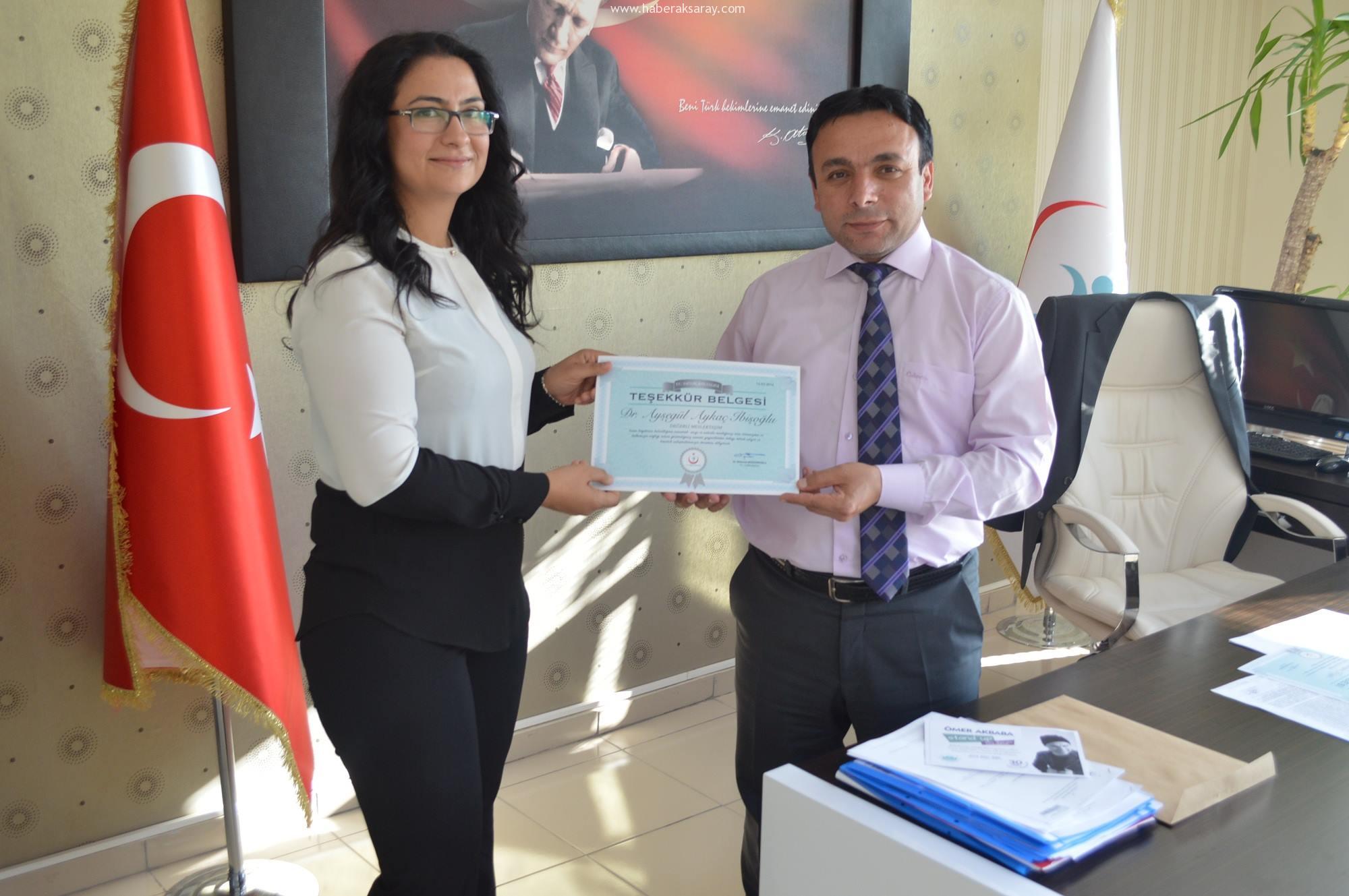 Aksaray Devlet Hastanesi Kardiyoloji Uzmanı Dr. İbrahim İzgü, Anestezi Uzmanı Dr. Ayşegül Aykaç İbişoğlu, Kadın Doğum Uzmanı Dr. Çiğdem Kılıç, Çocuk Hastalıkları Uzmanı Dr. Murat Kılıçaslan ve Acil Servis Doktoru Murat Özcan’da, Sağlık Bakanlığı tarafından başarılı çalışmalarından dolayı teşekkür belgesi ile ödüllendirildiler.
